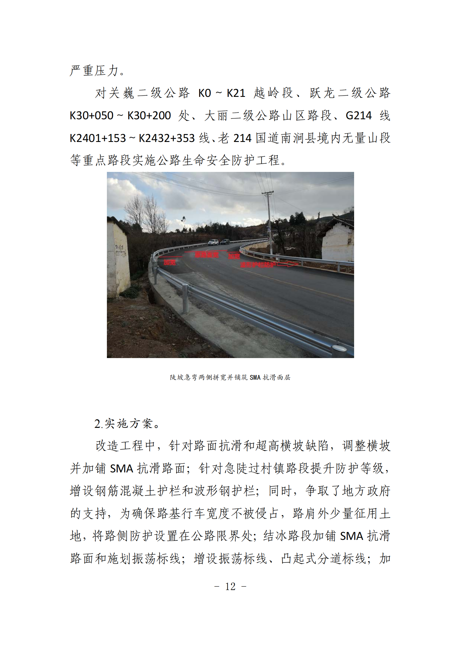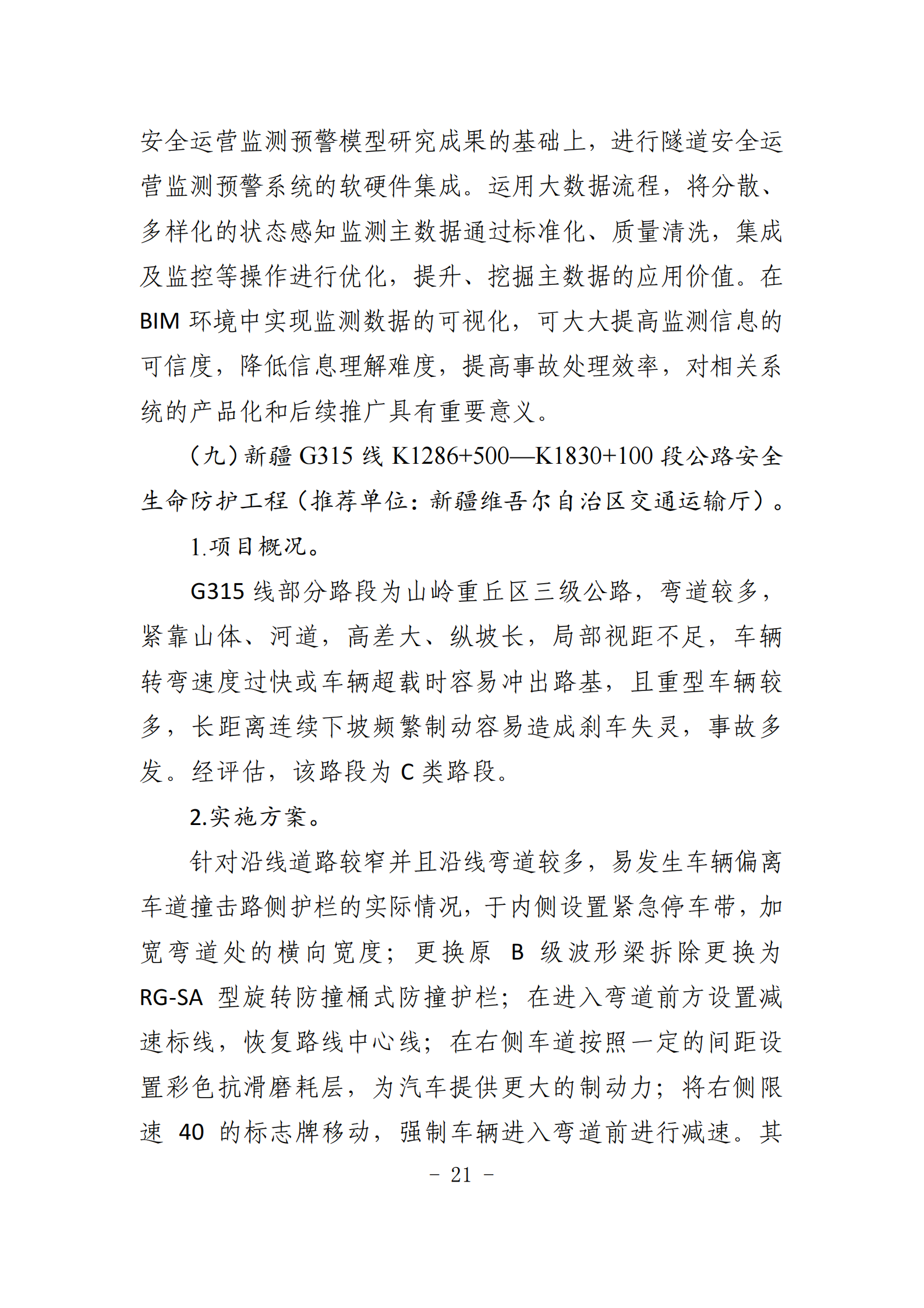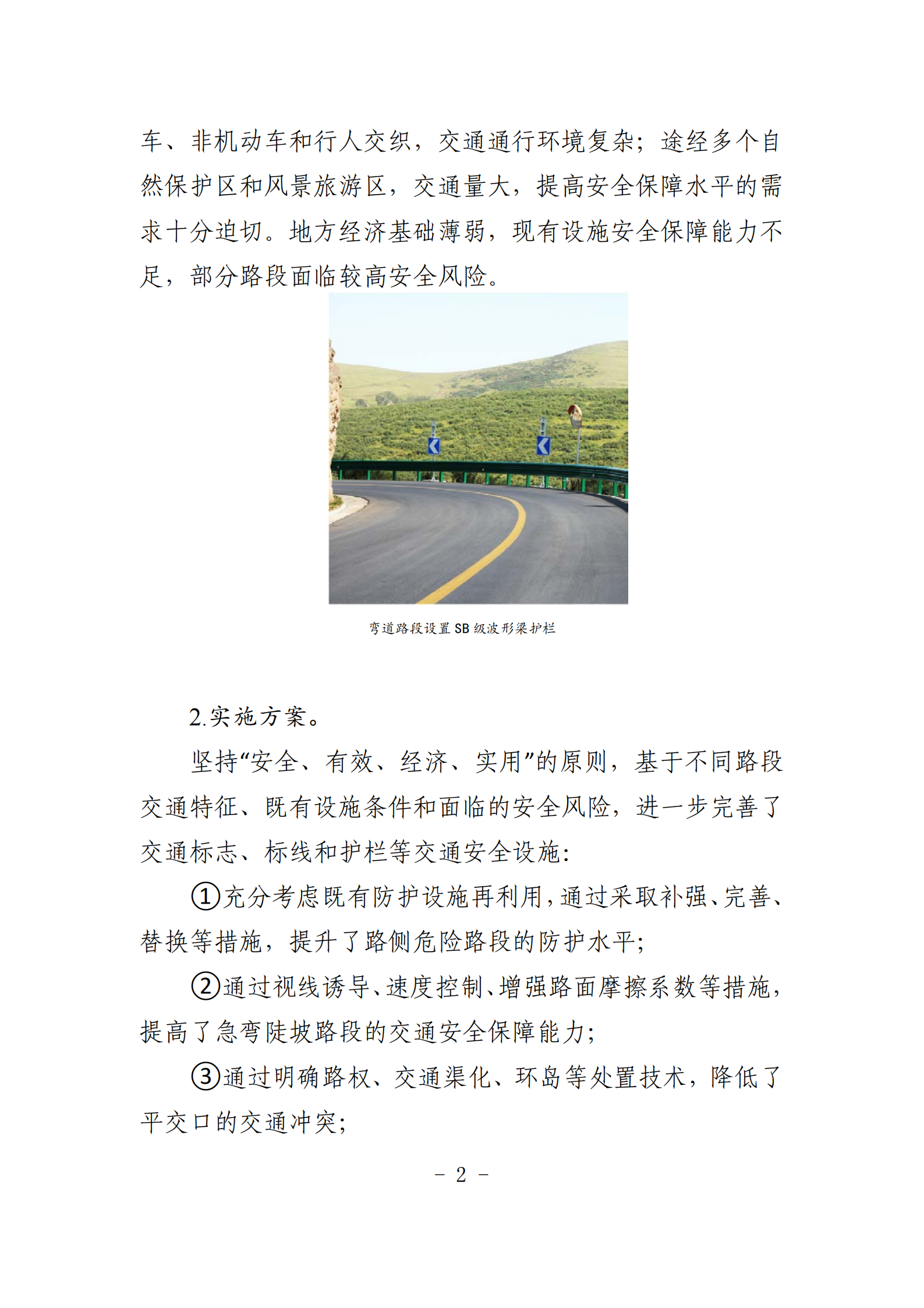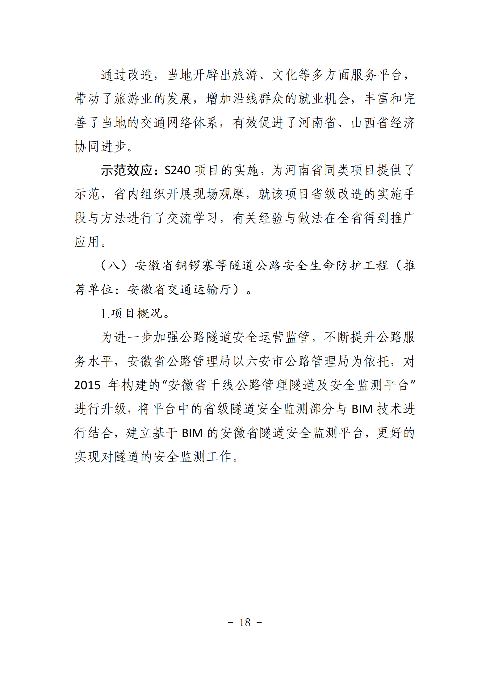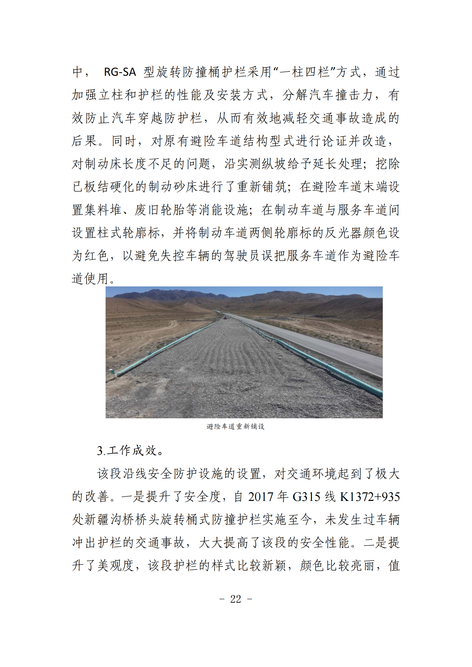 黨中央、國務(wù)院高度重視公路安全工作。“十三五”以來,按照部統(tǒng)一部署,各地區(qū)公路安全生命防護工程、危橋改造工程和干線公路災(zāi)害防治工程(以下統(tǒng)稱三項工程)取得積極成效,實施了一批理念先進(jìn)、功能齊全、措施耐久、技術(shù)創(chuàng)新的精品工程、平安工程、放心工程。為挖掘、總結(jié)、推廣各地三項工程成功經(jīng)驗和典型做法,部在前期征集的基礎(chǔ)上,經(jīng)組織推薦、專家評審、現(xiàn)場復(fù)核等程序,形成全國公路安全生命防護工程典型案例10項(綜合類3項,組織實施類3項,技術(shù)創(chuàng)新類4項),全國危橋改造工程典型案例12項(制度建設(shè)類1項,組織實施類4項,技術(shù)創(chuàng)新類7項),全國干線公路災(zāi)害防治工程典型案例8項(綜合類1項,組織實施類3項,團隊建設(shè)類1項,技術(shù)創(chuàng)新類3項)。希望有關(guān)交通運輸部門再接再厲,進(jìn)一步加強組織領(lǐng)導(dǎo)和責(zé)任落實,持續(xù)動態(tài)完善,健全長效機制,積極推進(jìn)公路高質(zhì)量發(fā)展。各級交通運輸主管部門要學(xué)習(xí)借鑒典型案例的經(jīng)驗做法,不斷創(chuàng)新提高,持續(xù)做好項目前期、工程設(shè)計、工程質(zhì)量監(jiān)督、資金管理及工程驗收等工作,全面提升公路安全保障水平,為人民群眾安全便捷舒適出行提供堅實的交通運輸保障。
